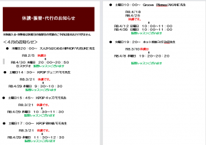 休講・振替・代行のお知らせ